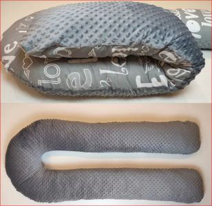 Купить подушку для беременных U-340 Плюш темно-серый+love на сером 156